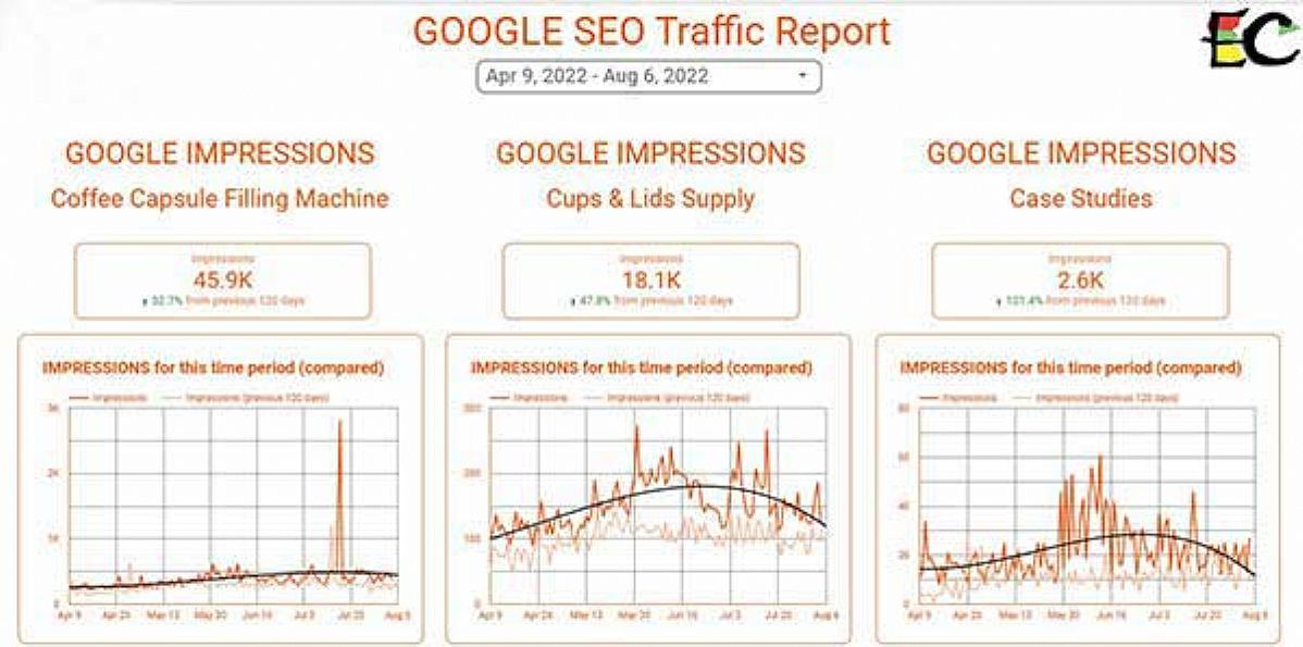 由于一些控件的实现需要代码,正则表达式以及函数的支持,所以想要制作高水平的报告就有必要学会灵活使用各种公式。 因此,EC-Center 培训了优秀的Data Studio专家,根据SEO 的重点和网站的类型,制作出合适的数据洞察报告。 值得强调的是,因为在 SEO 中,我们直接与谷歌沟通,从 Google 获得有价值的关键词,优化师制作了一个非品牌关键字图标,可以从可视化的图标中直接挖掘具有良好数据的关键词并进行优化,创建更快的模式来进行SEO工作; 考虑到网站排名的趋势,我们定制了Average Position图标,以可视化网站的上升趋势。我们还通过联系数据图表定期监控网站转化率和自然搜索。 不断升级我们的 EC Engine 平台和 SEO 方法以适应 Google 算法的变化。 EC-Center一直在不断探索与谷歌的"默契"交流,以改善和提升用户体验,专注于为客户提升网站质量、网站竞争力和网站转化。